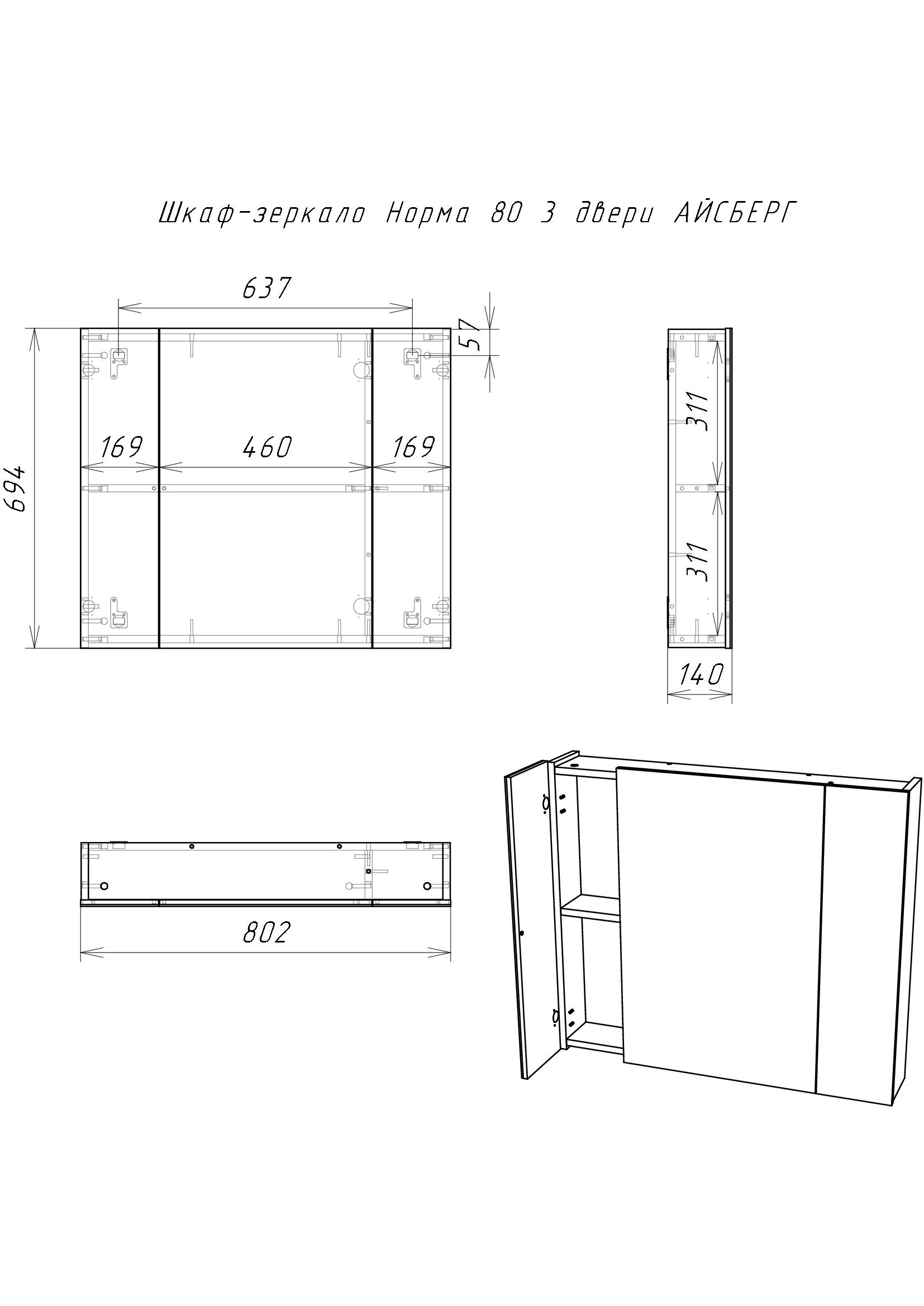 Шкаф зеркальный Домино Айсберг Норма 80 (DA1626HZ)