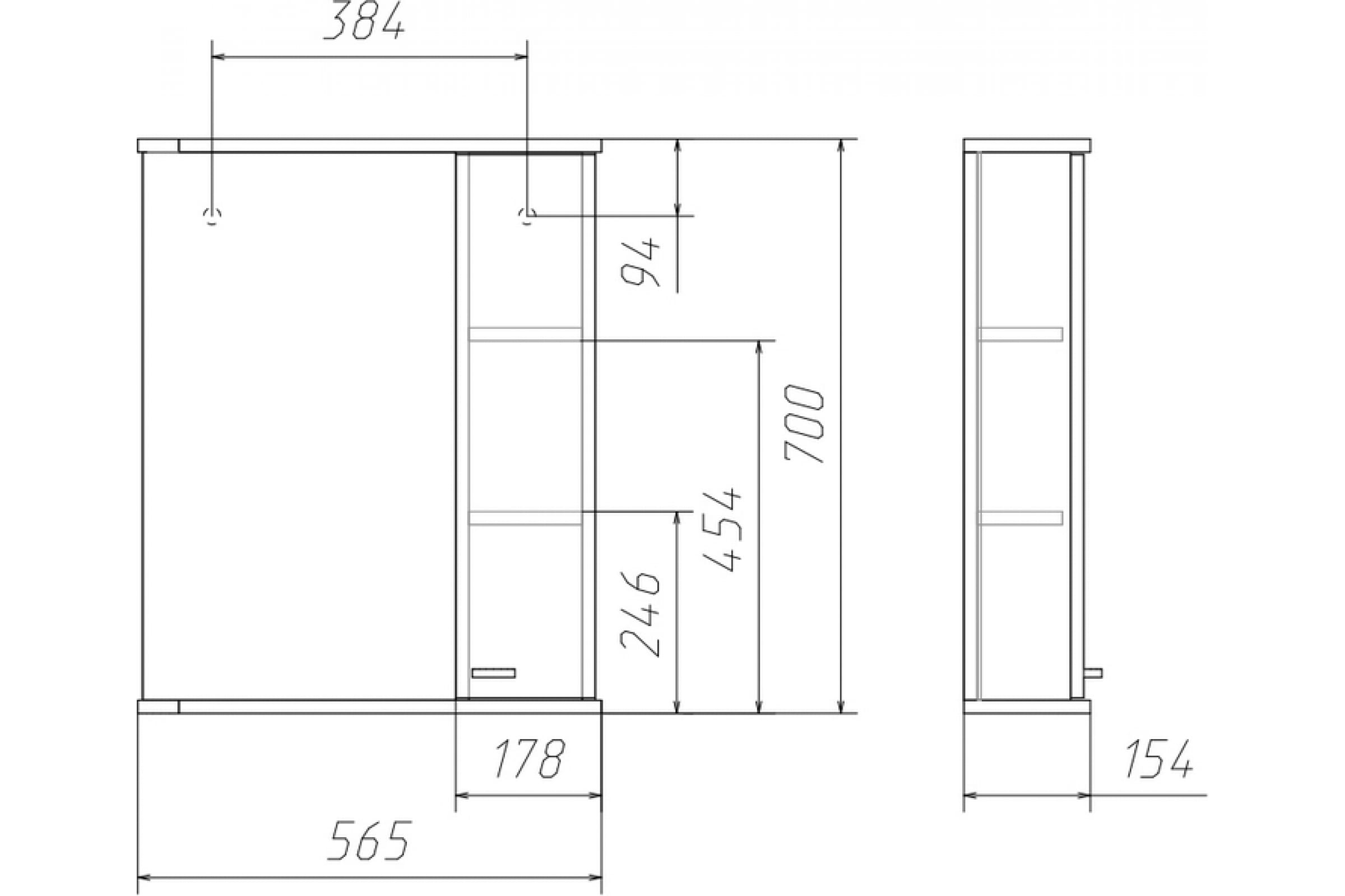 Корпус выполнен из ЛДСП, фасад из ЛМДФ и обтянут пленкой ПВХ. Для удобства хранения в шкафу установлено две полки.