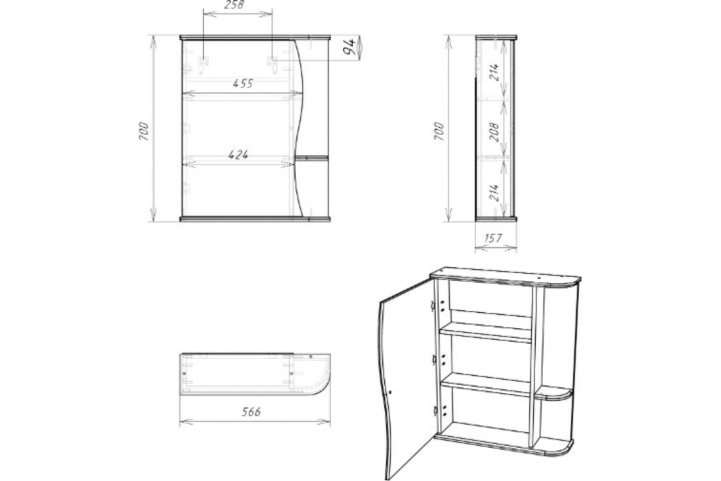 Шкаф-зеркало Айсберг Волна 1-55 левый DA1032HZ белого цвета легко и утонченно впишется в любой интерьер.