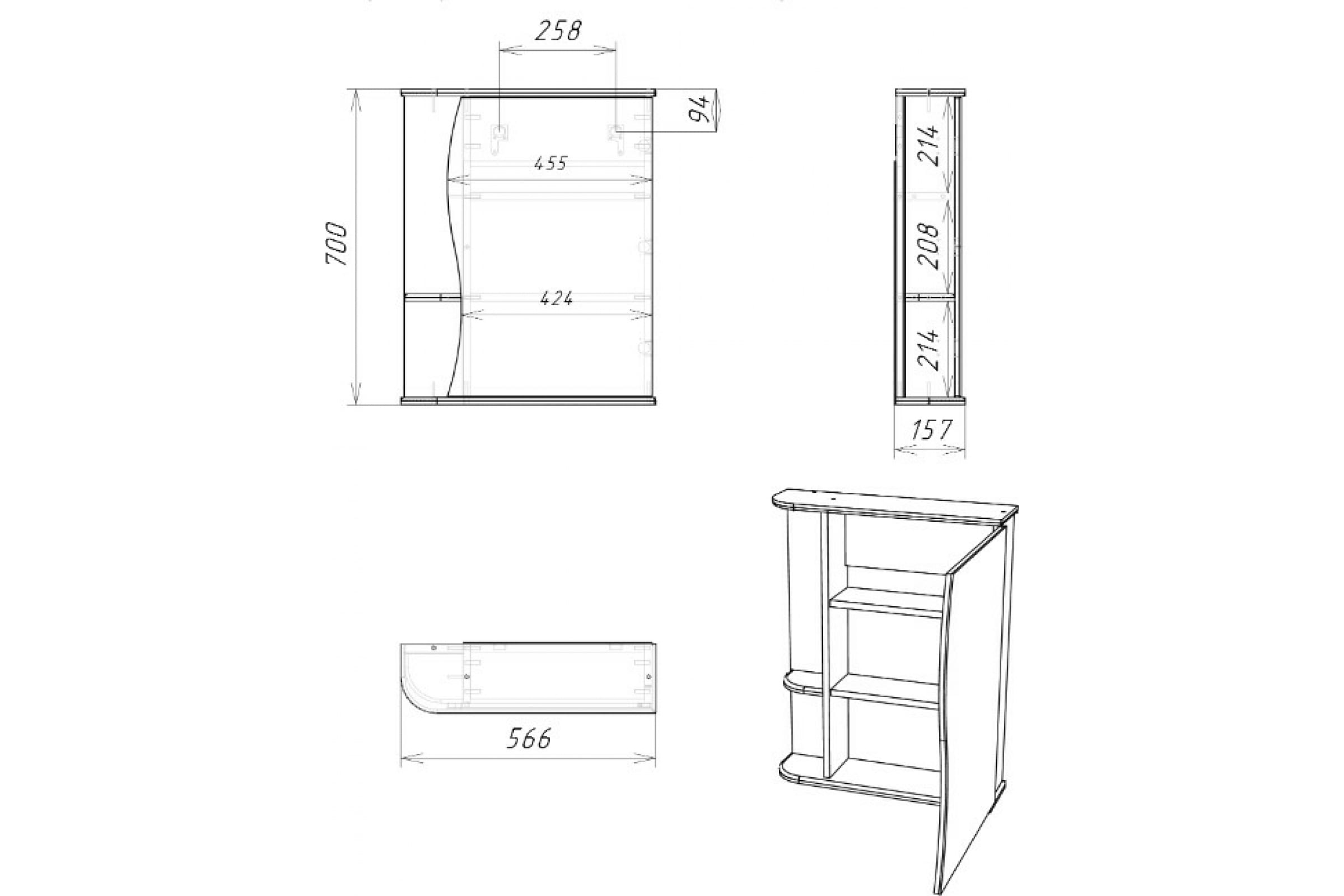 Шкаф зеркальный Домино Айсберг Волна 1-55 правый (DA1033HZ)