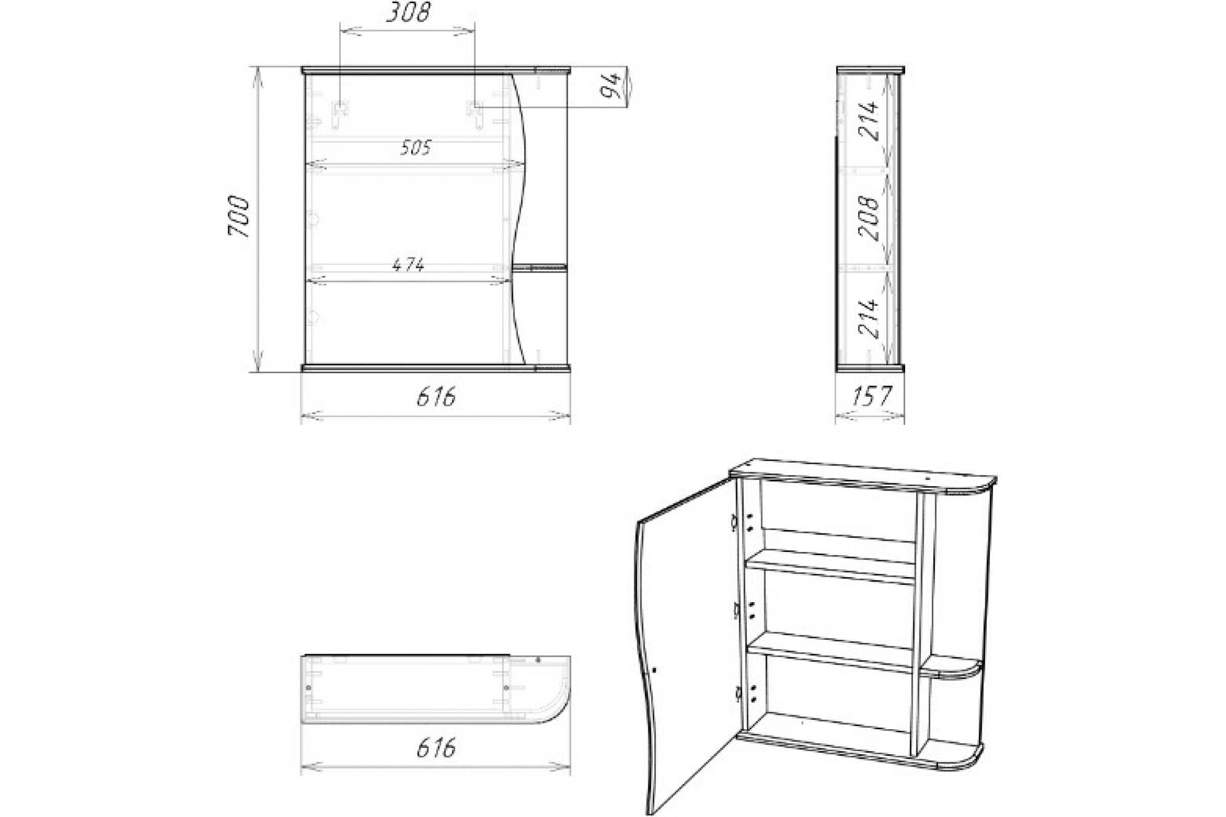 Шкаф-зеркало Айсберг Волна 1-60 левый DA1034HZ белого цвета легко и утонченно впишется в любой интерьер.