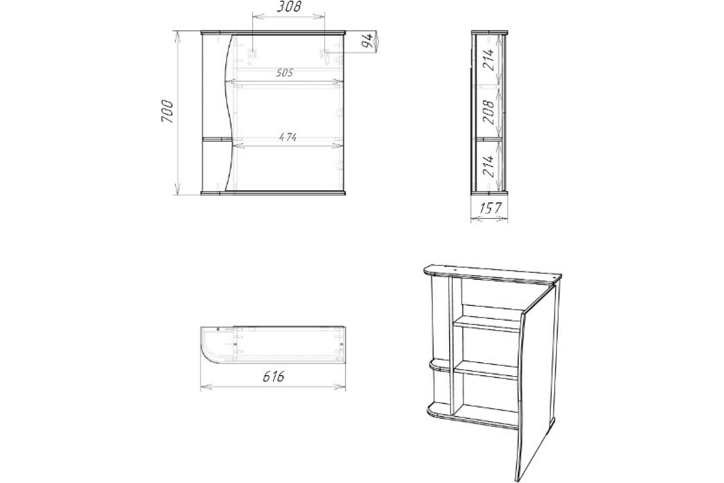 Шкаф зеркальный Домино Айсберг Волна 1-60 правый (DA1035HZ)