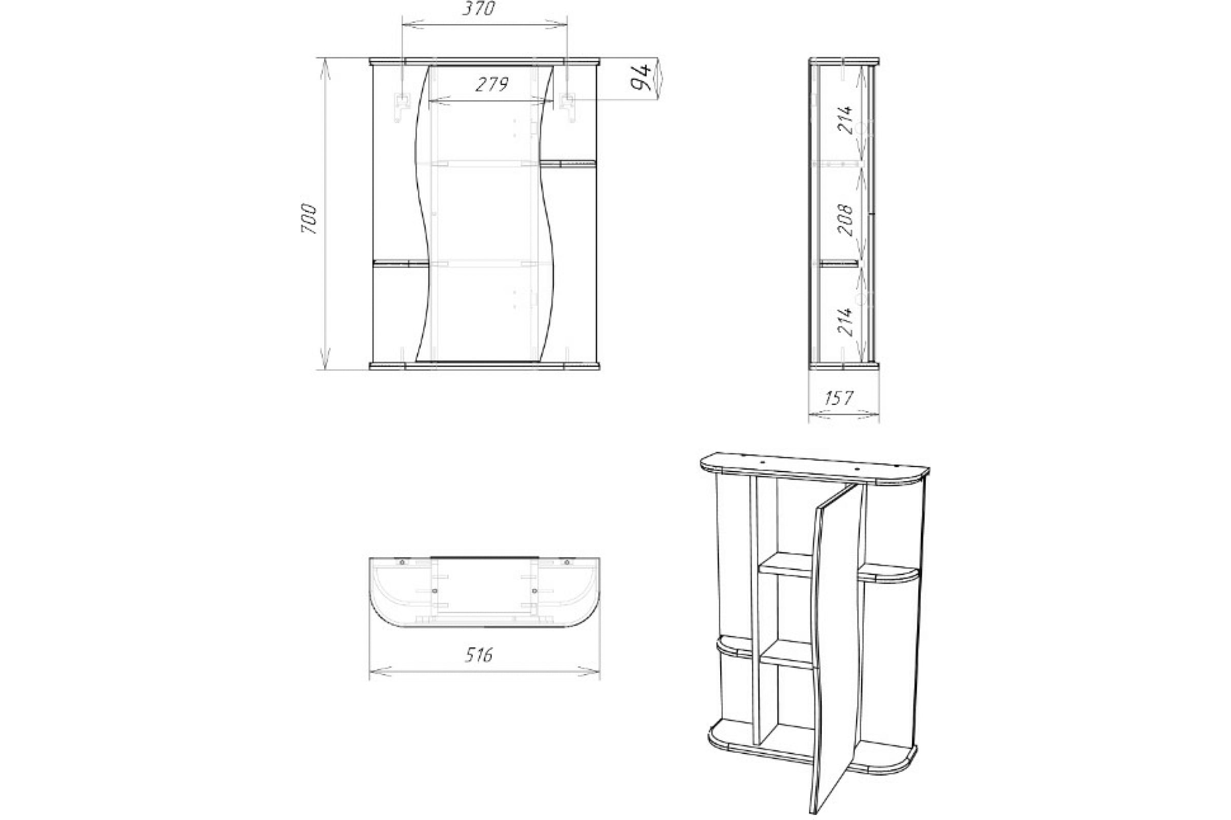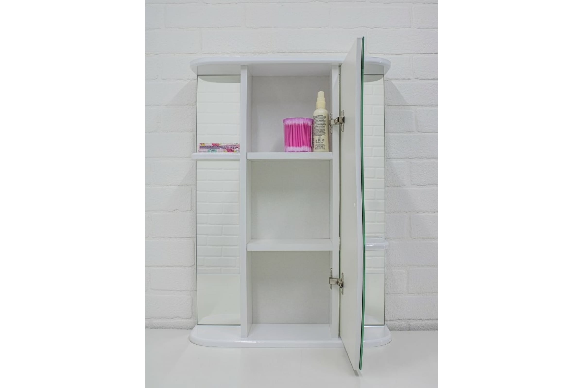 Шкаф-зеркало Айсберг Волна 2-55 правый белого цвета легко и утонченно впишется в любой интерьер.