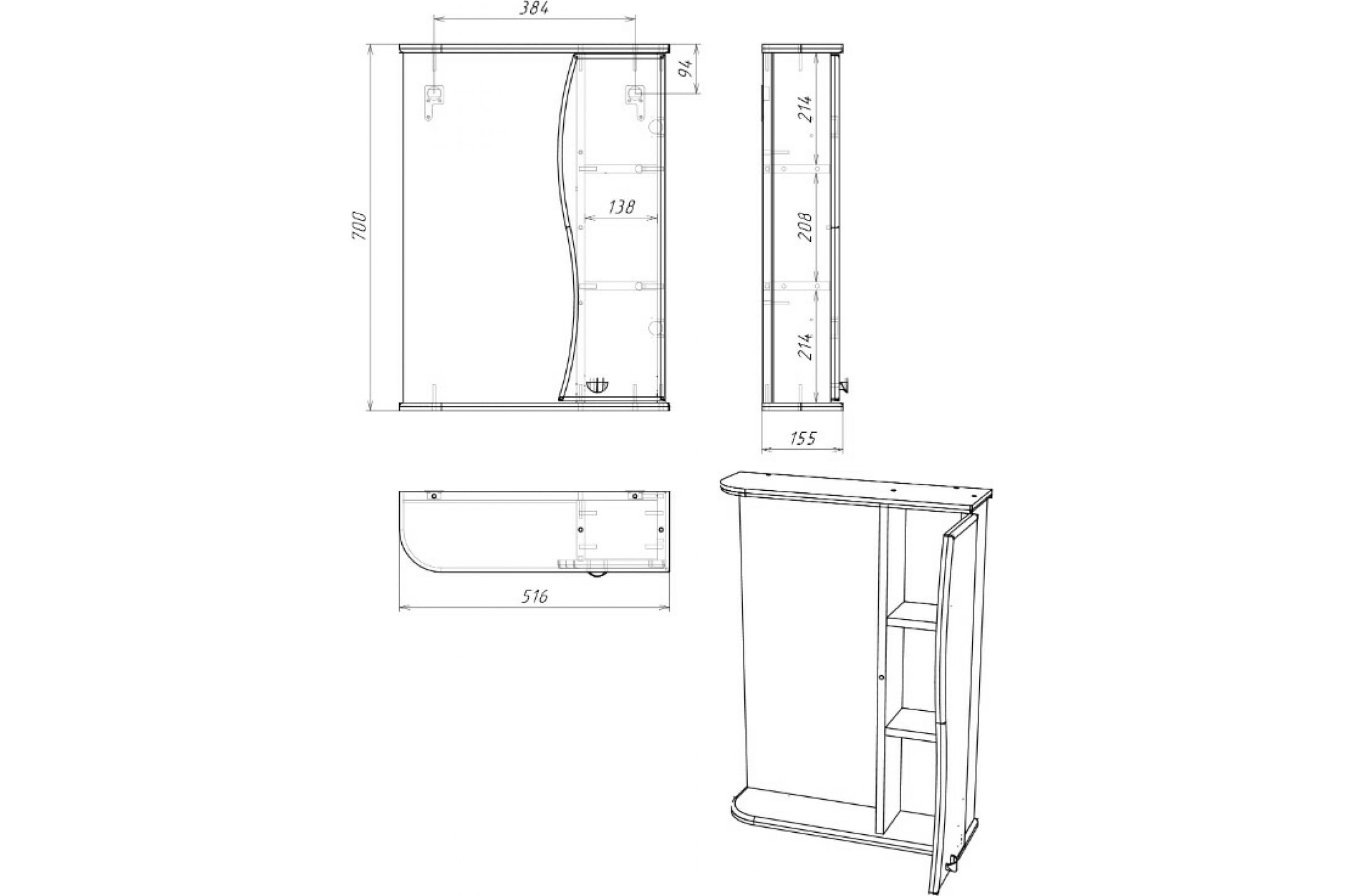 Шкаф зеркальный Домино Айсберг Волна 50 правый (DA1043HZ)