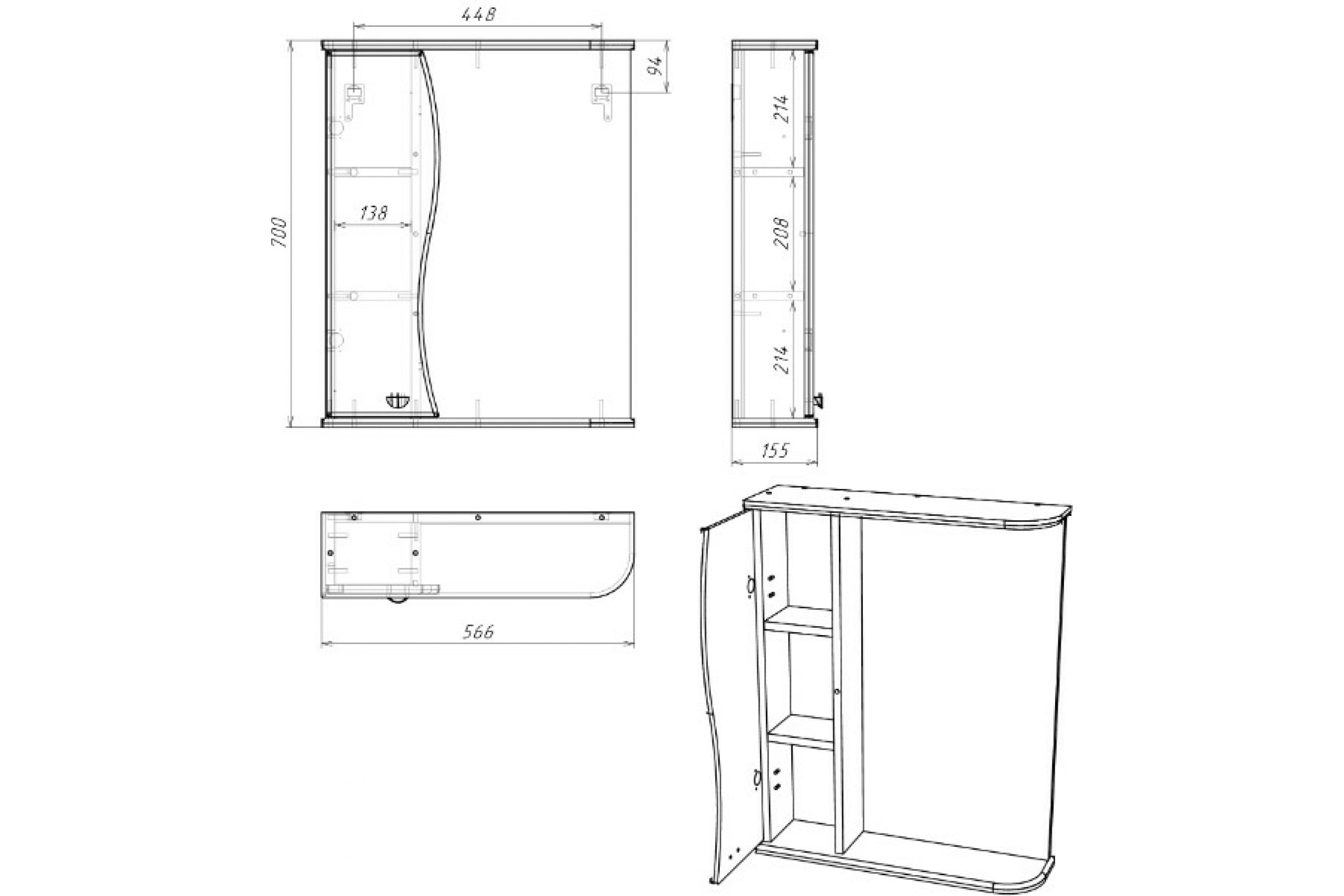 Шкаф зеркальный Домино Айсберг Волна 55 левый (DA1044HZ)