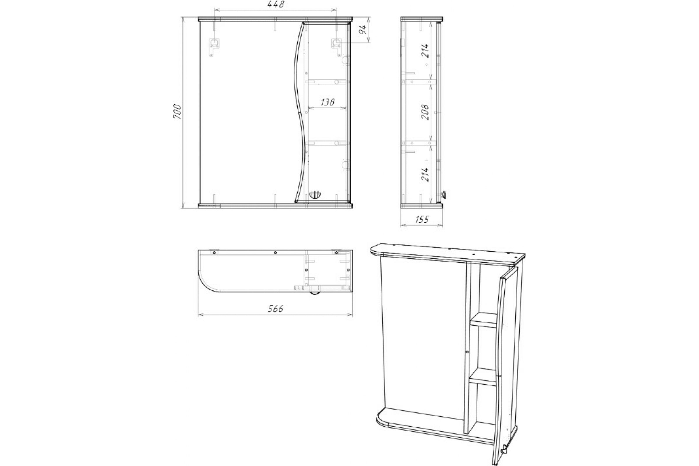 Шкаф зеркальный Домино Айсберг Волна 55 правый (DA1045HZ)