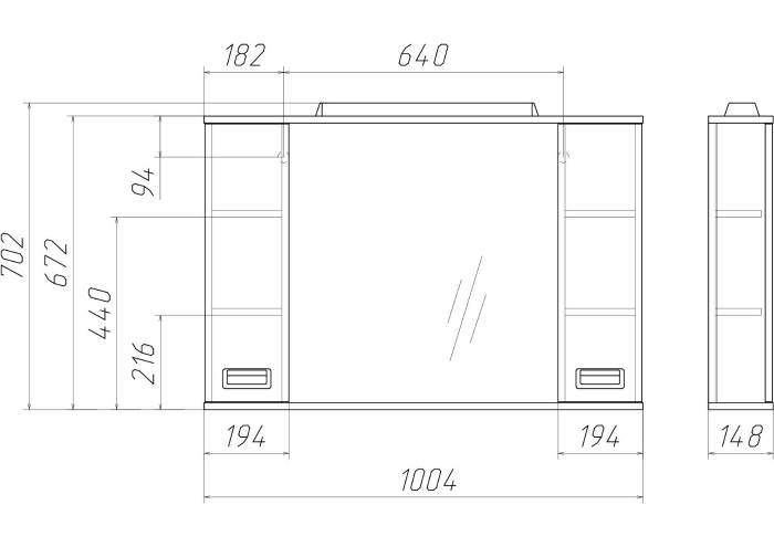 Над зеркалом установлена светодиодная подсветка, включатель подсветки снаружи. Подсветка работает с помощью электричества.