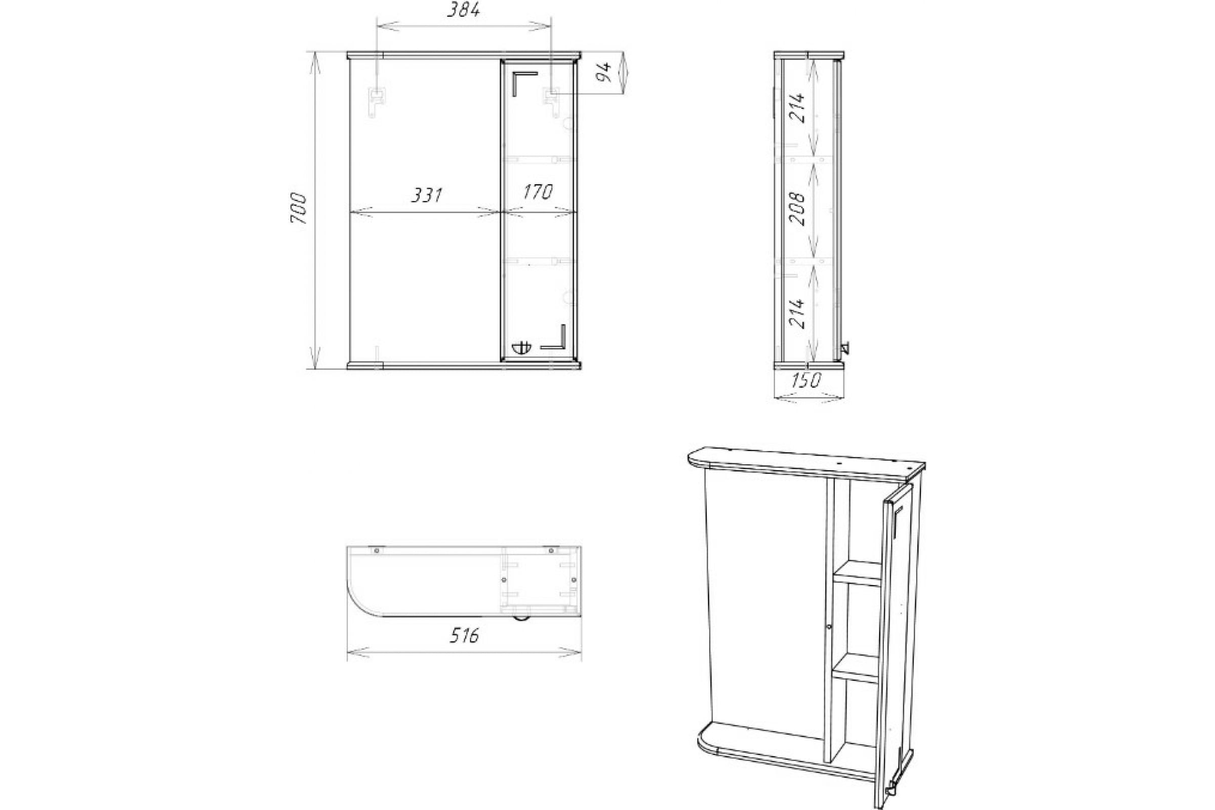 Шкаф зеркальный Домино Классик 50 правый (DA1049HZ)