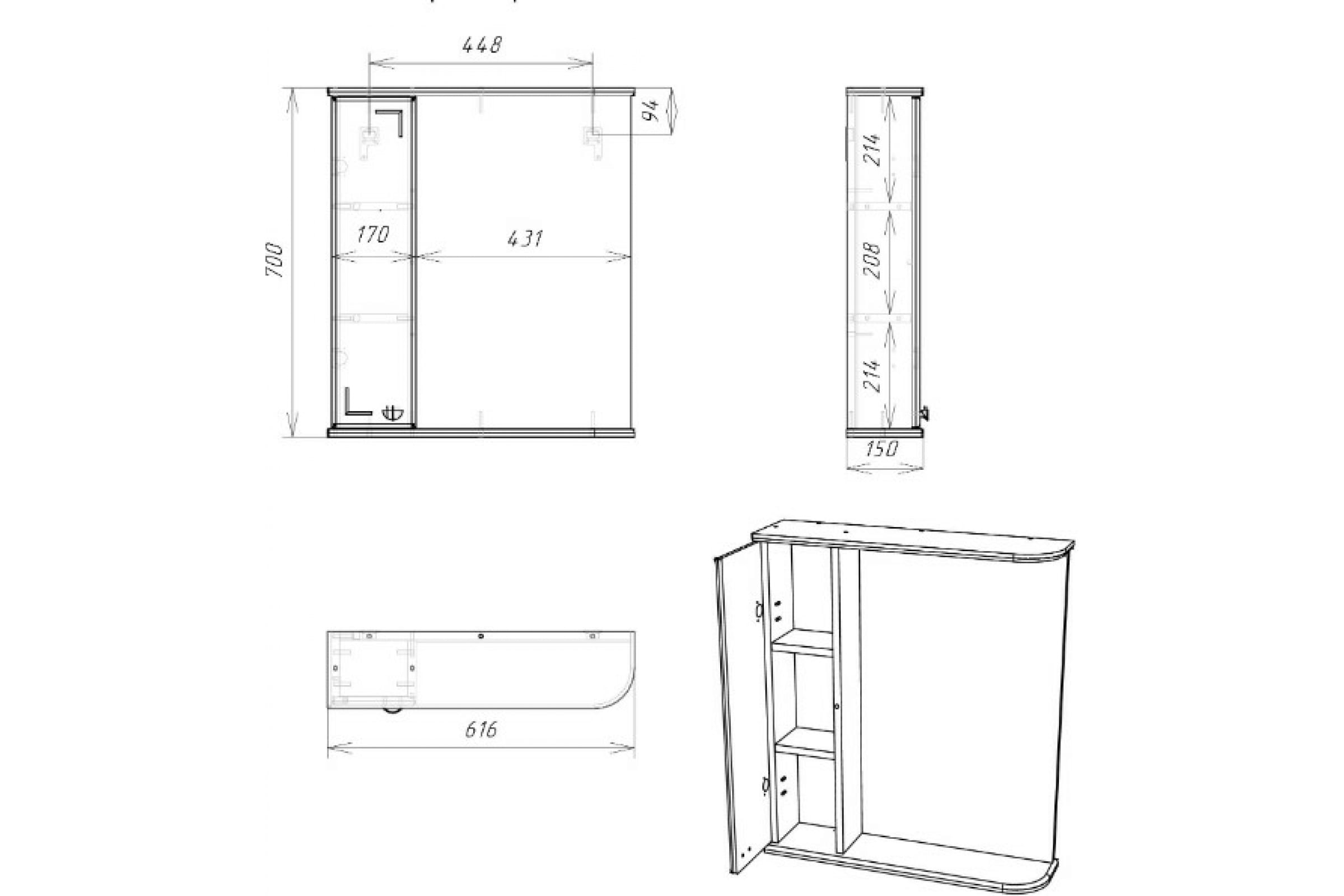Шкаф зеркальный Домино Классик 60 левый (DA1052HZ)