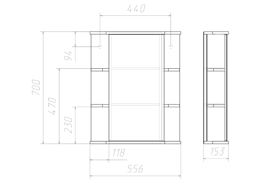 Шкаф зеркальный Домино Оазис-2 55 Идеал (DI44173HZ)