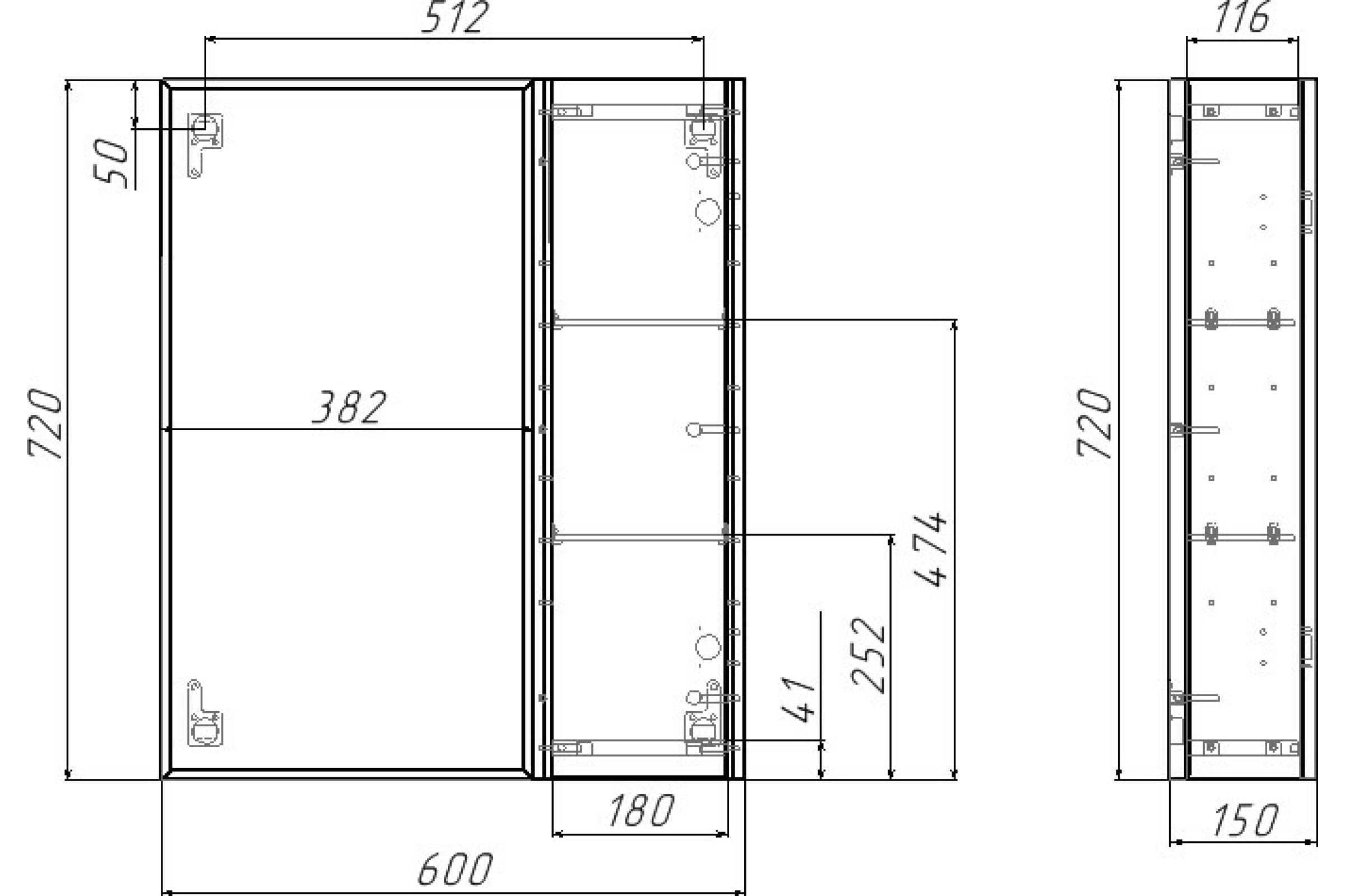 Боковые стенки выполнены из плиты МДФ и покрыты несколькими слоями высокоглянцевой эмали, что защищает их от воздействия влаги. Отсутствие ручек делает образ еще более легким и лаконичным.