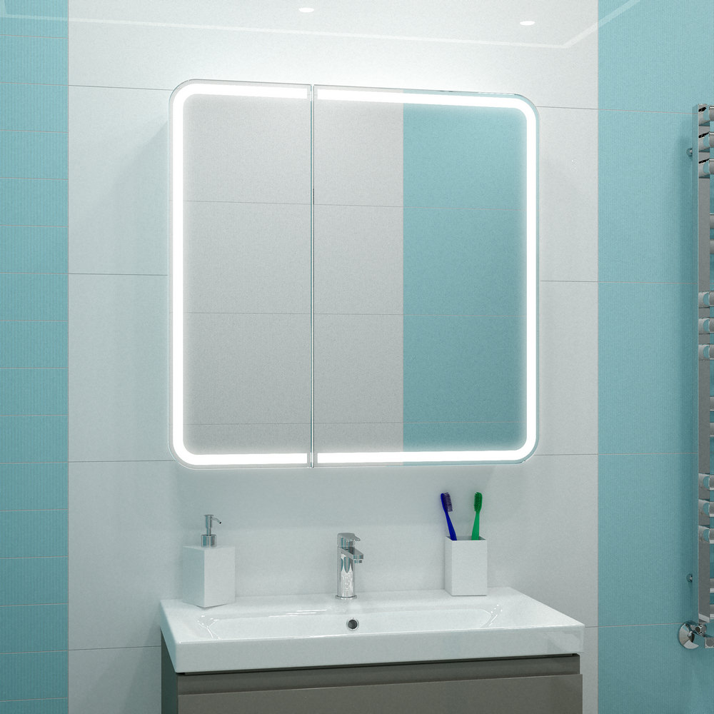 Шкаф зеркальный Континент Elliott LED 800х800 с датчиком движения, розеткой (МВК014)