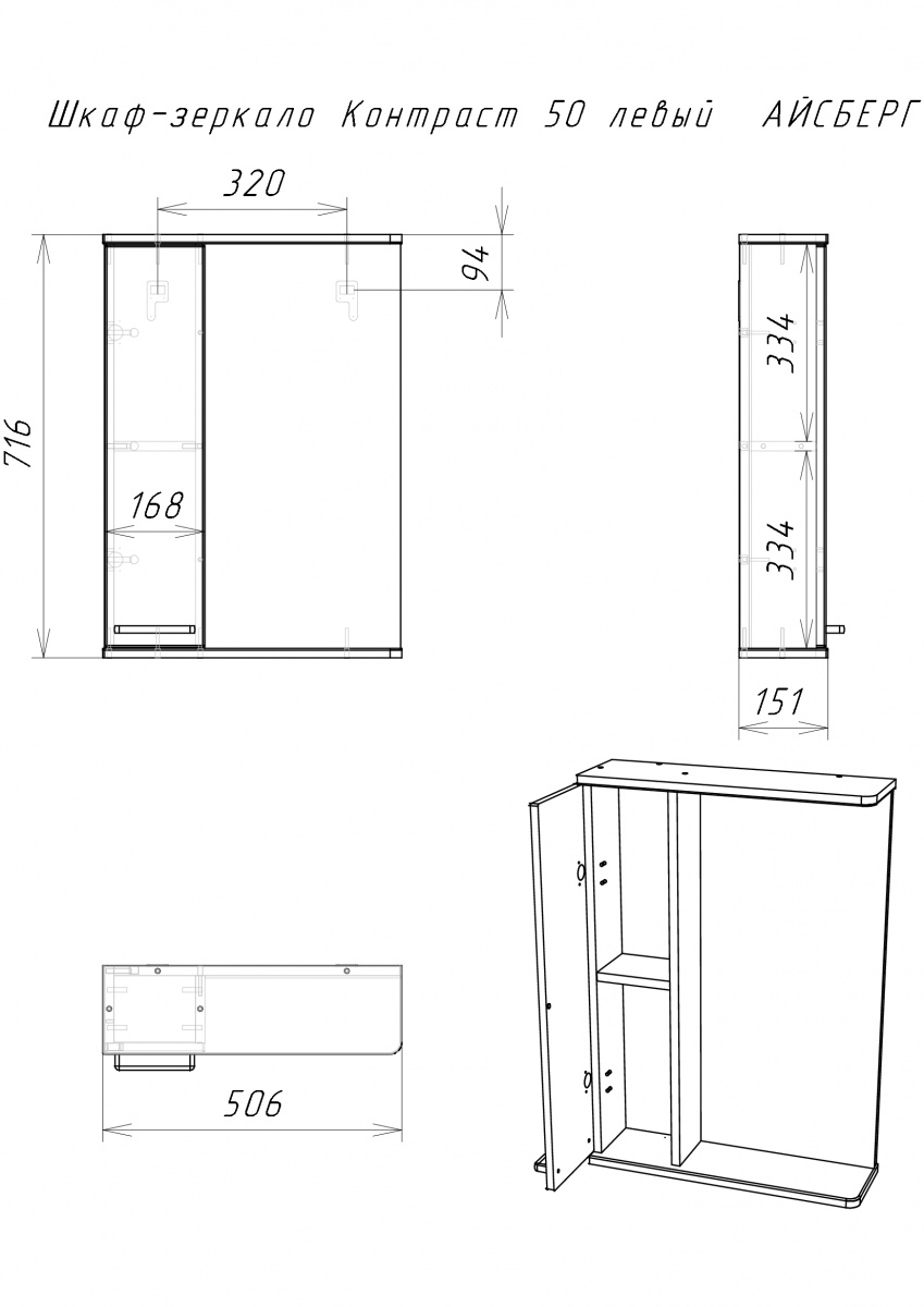 Шкаф-зеркало Контраст 50 левый АЙСБЕРГ – это идеальное решение для ванной комнаты. Он сочетает в себе функциональность и стиль, предлагая удобные возможности для хранения. С помощью зеркала в ванную можно создать визуально просторное пространство и добавить легкость интерьеру.