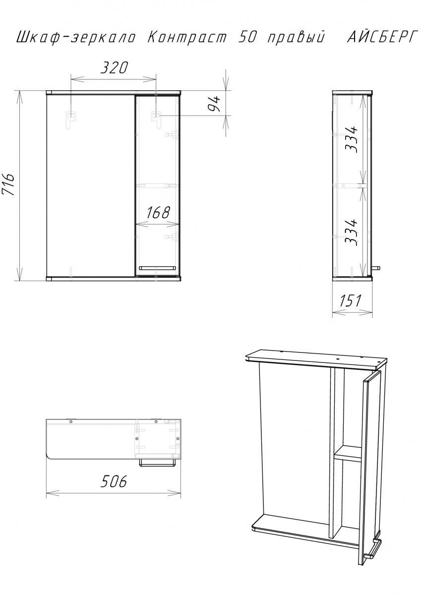Шкаф-зеркало Контраст 50 правый АЙСБЕРГ – это идеальное решение для ванной комнаты. Он сочетает в себе функциональность и стиль, предлагая удобные возможности для хранения. С помощью зеркала в ванную можно создать визуально просторное пространство и добавить легкость интерьеру.