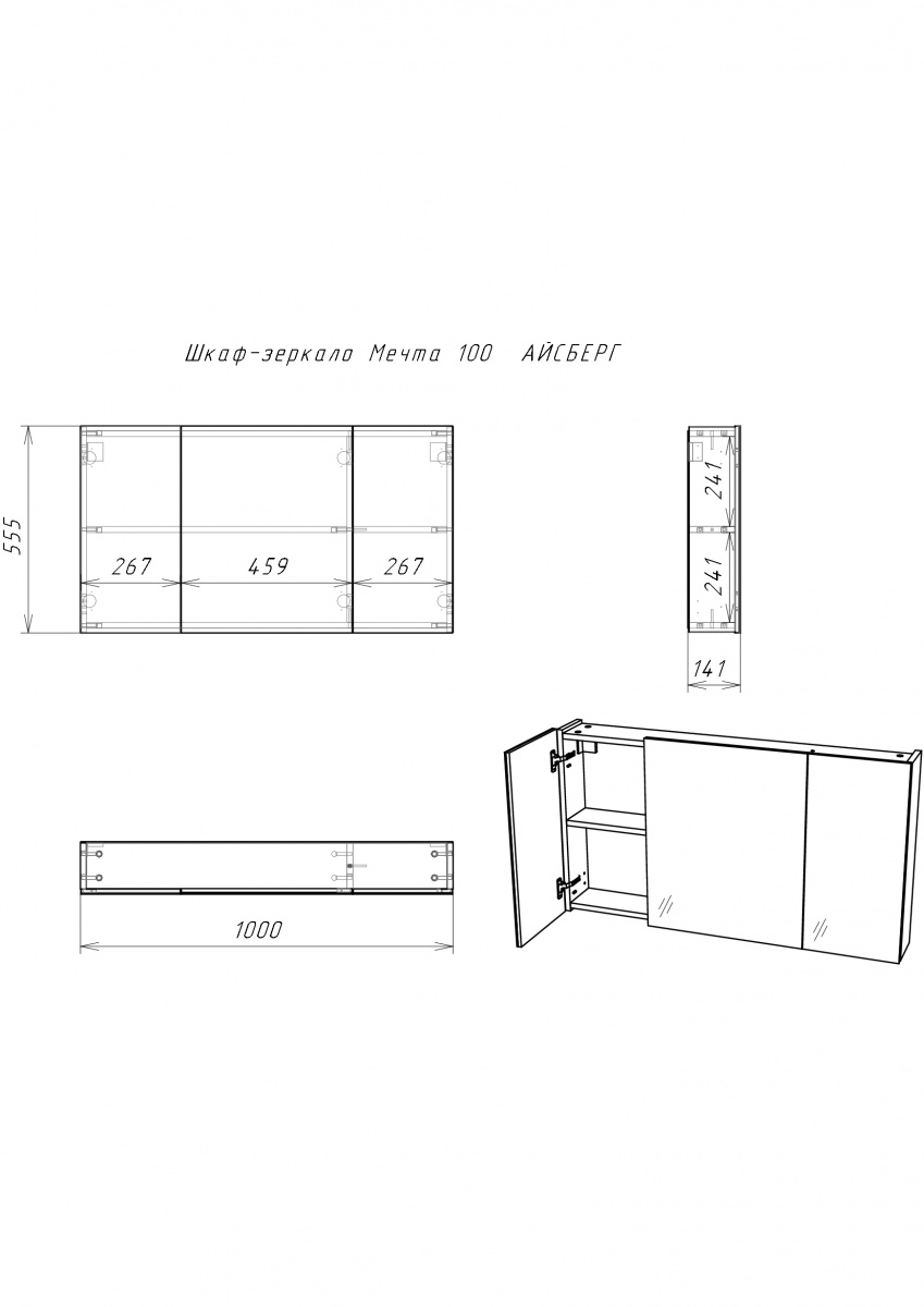 Шкаф зеркальный Мечта 100 Айсберг Домино (DM2322HZ)