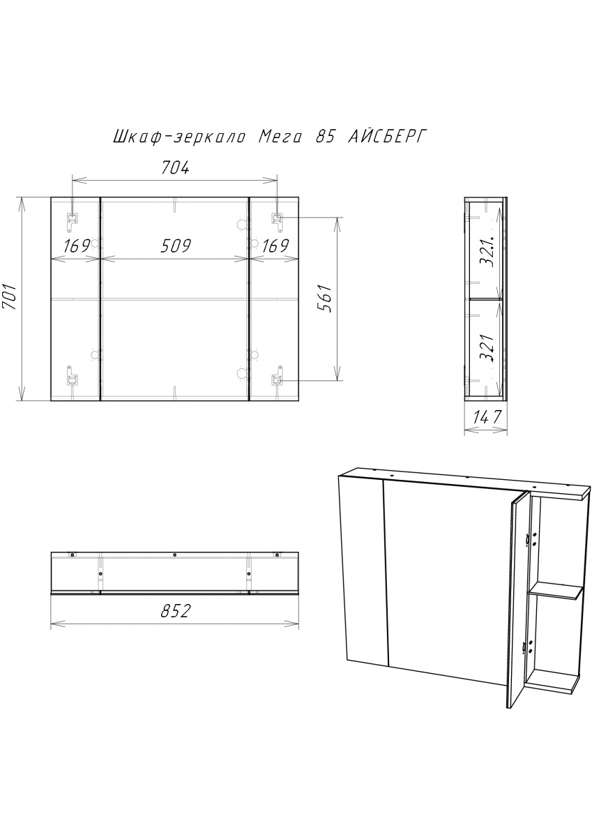Шкаф-зеркало Мега АЙСБЕРГ идеально подходит для ванной комнаты. Это функциональная мебель, которая объединяет в себе зеркало и шкаф для хранения. Отдельное внимание стоит уделить зеркальному шкафу. Он оснащен тремя распашными дверцами с доводчиками, что обеспечивает легкость и удобство использования.