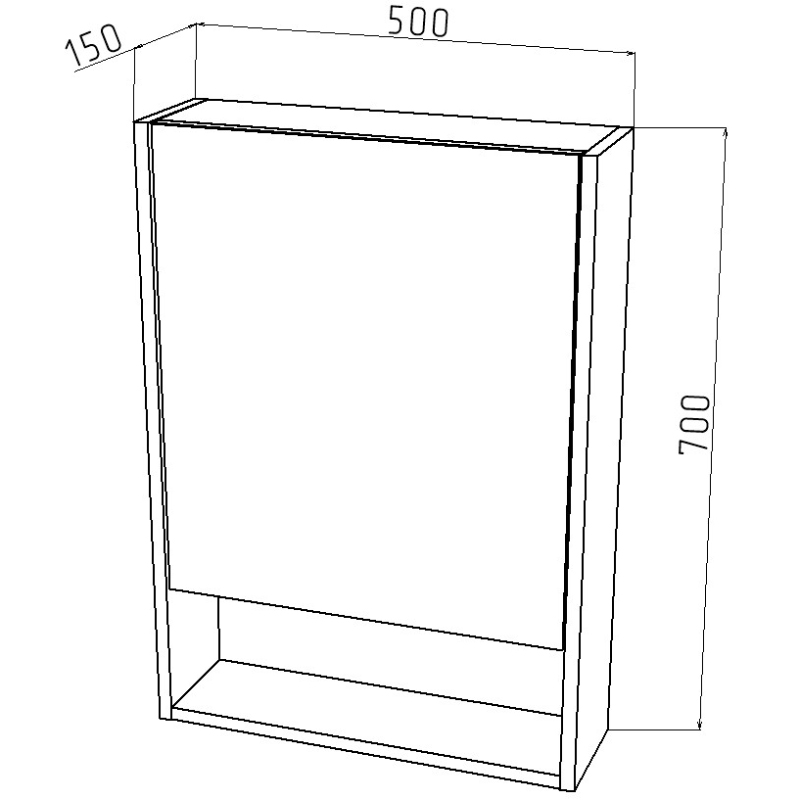 Подвесной зеркальный шкаф Универсал торговой марки Melodia della vita с габаритными размерами 150х500х700 это современное и эргономичное решение для вашей ванной комнаты, отражение ее стиля. Лаконичные линии дизайна подойдут к широкому ассортименту мебели и интерьеров. Конструкция шкафа включает в себя корпус с одной дверцей, на которую наклеено зеркало, а снизу открытая ниша. Позади двери две полки: одна с регулировкой, другая стационарная. Петли на двери с доводчиками. Зеркало и дверь имеют свис снизу, за который дверь можно открыть. Поставляется в собранном виде в комплекте с креплением к стене.