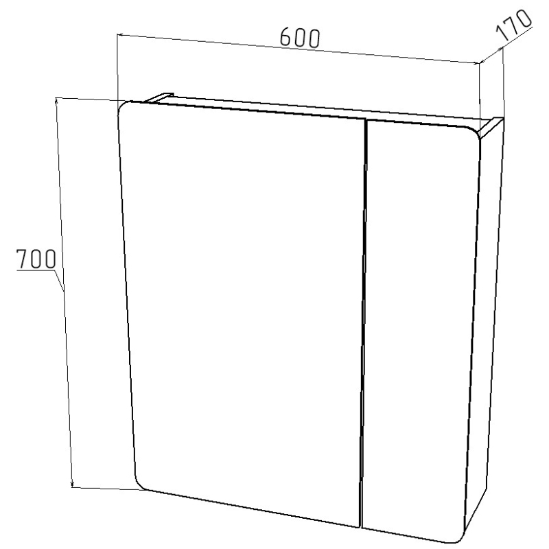Подвесной зеркальный шкаф Универсал 60 торговой марки Melodia della vita с габаритными размерами 170х600х700 это современное и эргономичное решение для вашей ванной комнаты, отражение ее стиля. Лаконичные линии дизайна подойдут к широкому ассортименту мебели и интерьеров. Конструкция шкафа включает в себя корпус с двумя дверцами, на которые наклеены зеркала со скругленным полированными углами. Позади дверей две полки с возможностью регулировки по высоте. Петли на дверях с доводчиками. Зеркала имеют свис снизу, за который двери можно открыть. Поставляется в собранном виде в комплекте с креплением к стене.