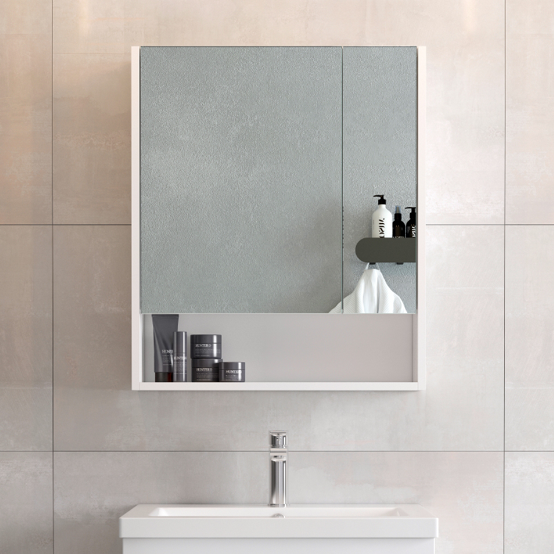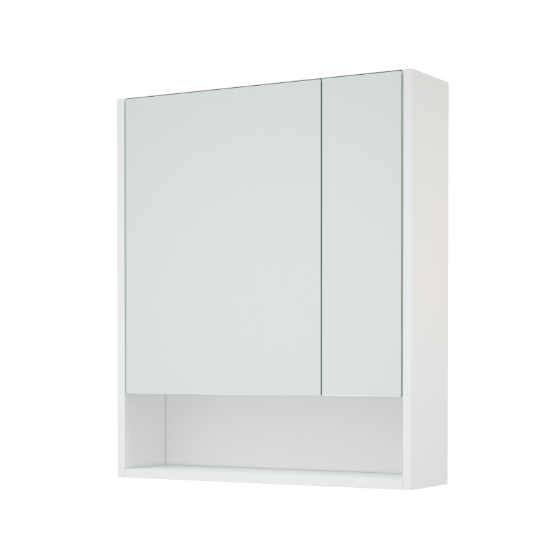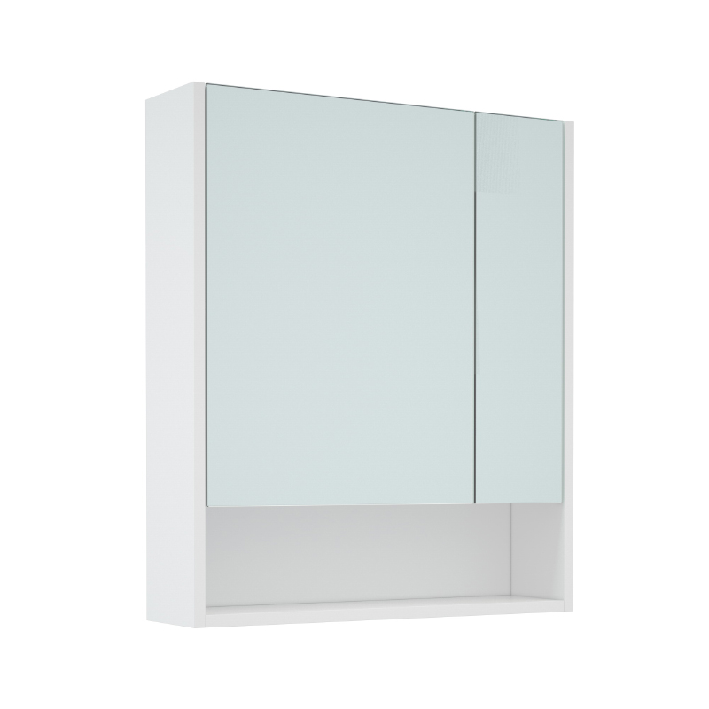 Подвесной зеркальный шкаф Универсал торговой марки Melodia della vita с габаритными размерами 150х700х600 это современное и эргономичное решение для вашей ванной комнаты, отражение ее стиля. Лаконичные линии дизайна подойдут к широкому ассортименту мебели и интерьеров. Конструкция шкафа включает в себя корпус с двумя дверцами, на которые наклеены зеркала, а снизу открытая ниша. Позади дверей пространство разделено перегородкой, в каждой части по две полки: одна с регулировкой, вторая стационарная. Петли на дверях с доводчиками. Зеркальная дверь имеет свис снизу, за которую её можно открыть. Поставляется в собранном виде в комплекте с креплением к стене.
