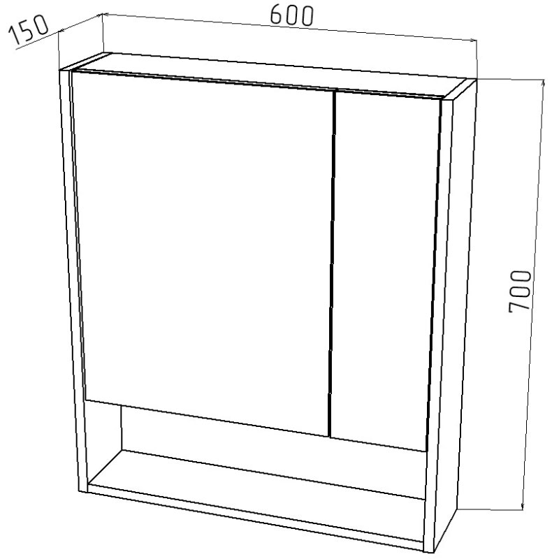 Подвесной зеркальный шкаф Универсал торговой марки Melodia della vita с габаритными размерами 150х700х600 это современное и эргономичное решение для вашей ванной комнаты, отражение ее стиля. Лаконичные линии дизайна подойдут к широкому ассортименту мебели и интерьеров. Конструкция шкафа включает в себя корпус с двумя дверцами, на которые наклеены зеркала, а снизу открытая ниша. Позади дверей пространство разделено перегородкой, в каждой части по две полки: одна с регулировкой, вторая стационарная. Петли на дверях с доводчиками. Зеркальная дверь имеет свис снизу, за которую её можно открыть. Поставляется в собранном виде в комплекте с креплением к стене.
