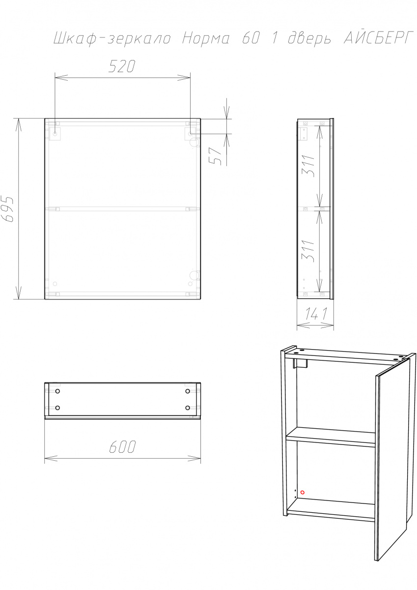 Представляем Шкаф-зеркало Норма 60 1 дверь АЙСБЕРГ, идеально подходящий для ванных комнат. Эта мебель для ванной совмещает функциональность и стиль. Подвесной дизайн позволяет эффективно использовать пространство. Удобная распашная дверка с доводчиками обеспечивает плавное и тихое закрытие.