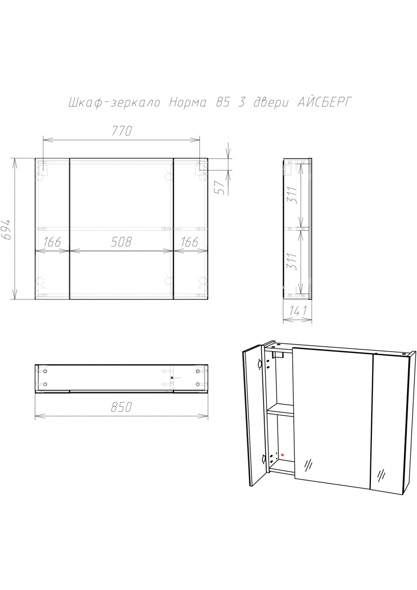 Шкаф зеркальный Норма 85 3 двери Айсберг Домино (DA1642HZ)