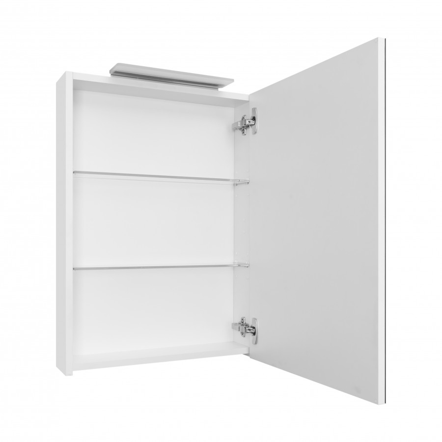 Зеркальный шкаф OLETA оснащен светильником от европейского бренда с возможностью регулировки положения, IP 44, 5 700 K. Теплота света у светильника 5 700 K - это яркий свет, идеальный для нанесения макияжа и бритья. Положение светильника можно регулировать: наклонить слегка вниз или направить свет повыше. За зеркальными фасадами расположены регулируемые по высоте полочки из просветленного стекла. Фасады оснащены петлями с плавным закрыванием.