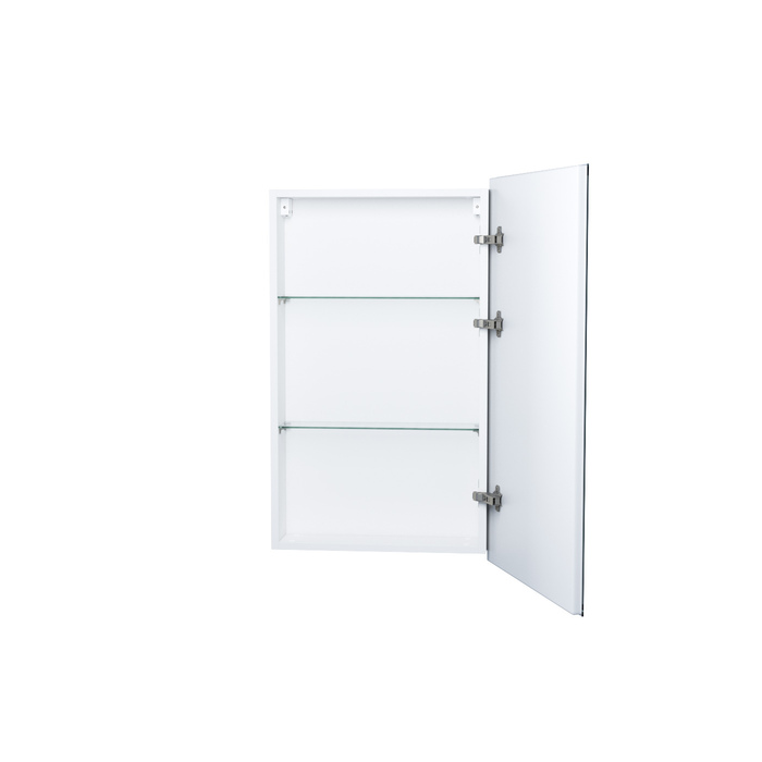 Шкаф-зеркало для ванной с LED-подсветкой. Размеры 500*800*160 Белая ЛДСП, Пластиковый короб на дверцах. 2 стеклянные полочки, механический выключатель, розетка