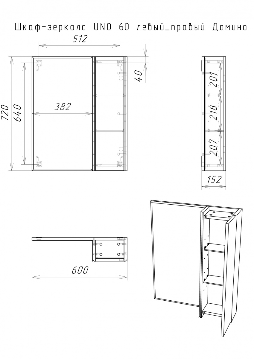Шкаф зеркальный Uno 60 Дуб ВОТАН универсальный Домино (DU1512HZ)