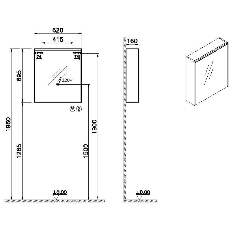 Шкаф зеркальный Vitra 60 см с LED подсветкой, левосторонний (66909)