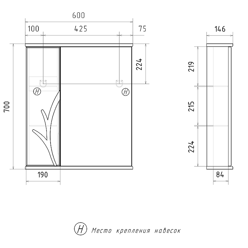 Шкаф зеркальный Volna Adel 600x700 белый (zsADEL60.L-01)