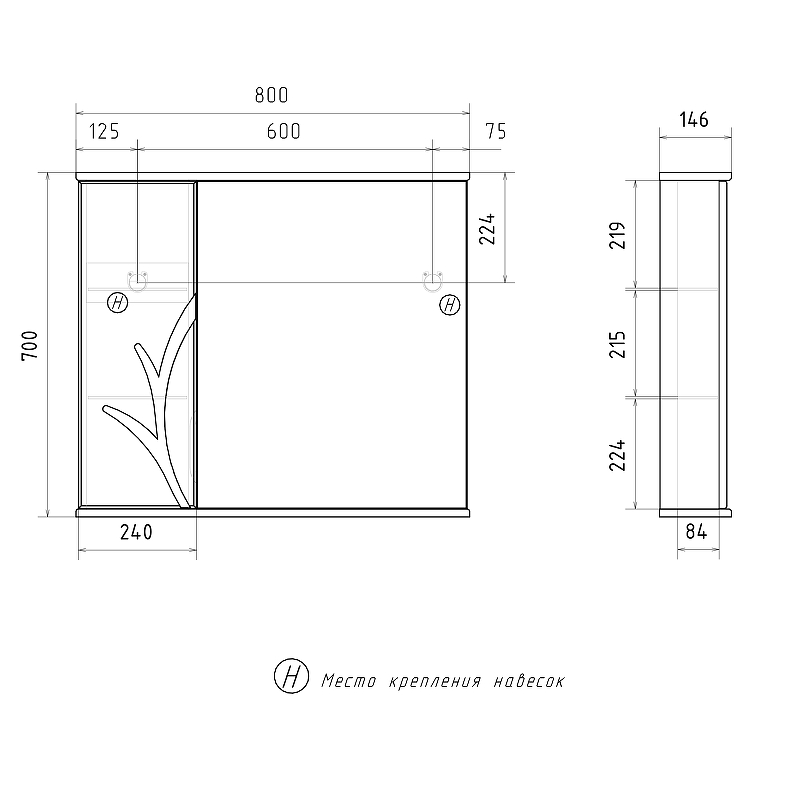 Шкаф зеркальный Volna Adel 800x700 белый (zsADEL80.L-01)