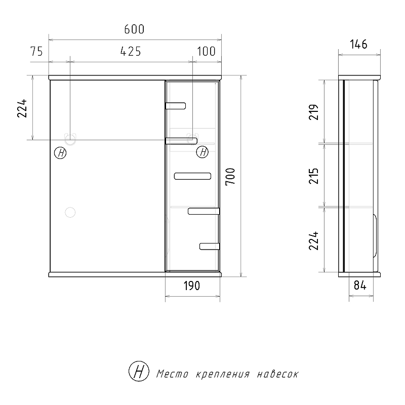 Шкаф зеркальный Volna Joli 600x700 белый (zsJOLI60.R-01)
