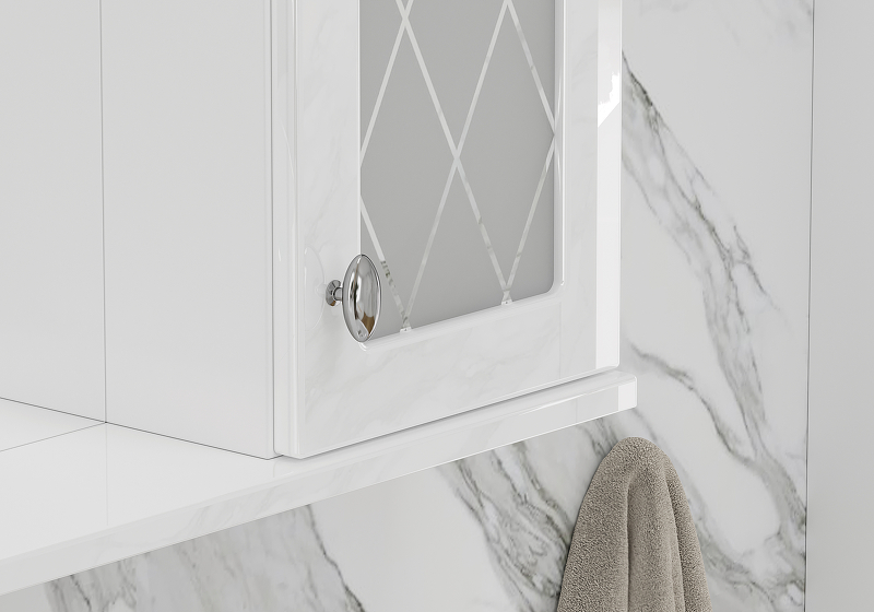 Цвет фурнитуры: хром.В дверце установлена вставка из зеркального полотна с рисунком амальгамой.