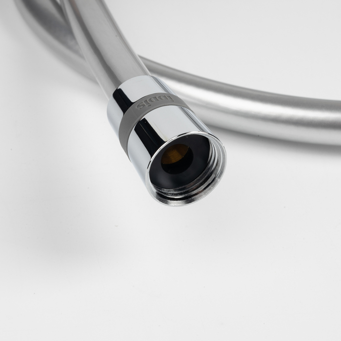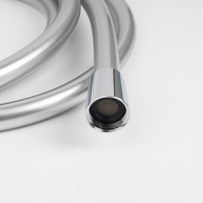 Шланг для душа, Осн. Материал - Поливинилхлорид (ПВХ), Цвет - Хром, ПВХ окрашивание, Гарантия 3 года, Размер изделия 2000x22x25, Длина шланга 2м, Диаметр гаек G 1/2, Материал внеш. оплётки - ПВХ.
