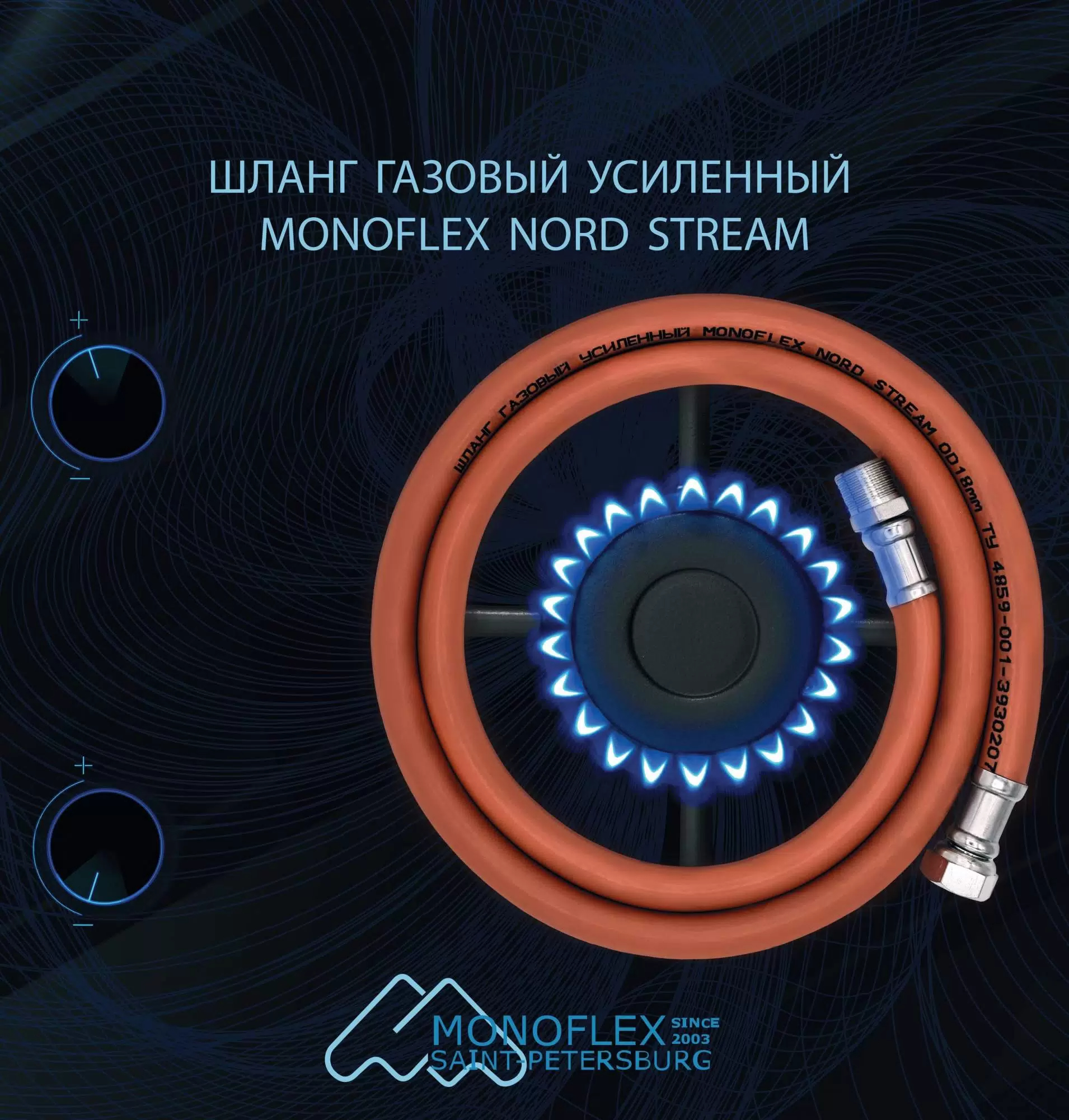 Газовый шланг MONOFLEX Nord Stream с уникальным конструктивом фитинга для безупречной герметичности и надежного соединения, применяется для подключения газовых плит, колонок и других бытовых газовых приборов.