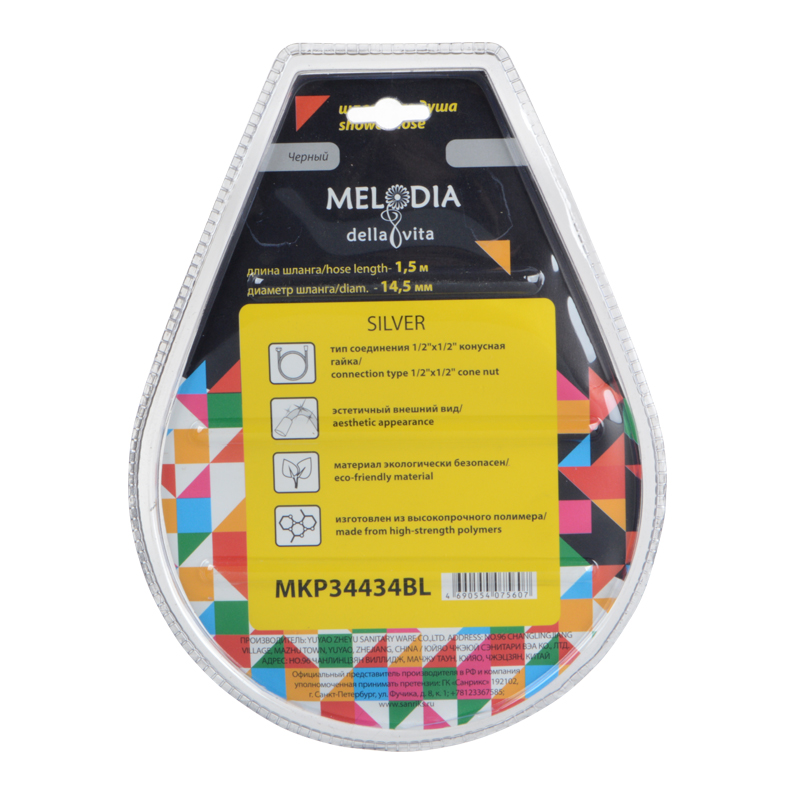 Шланг душевой Melodia SILVER ПВХ L150 см серебро (MKP34434BL)