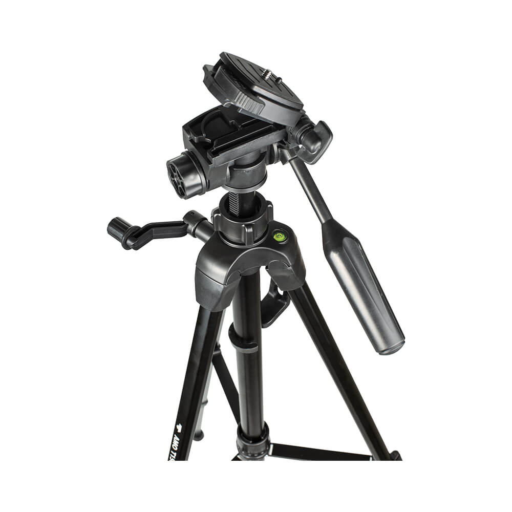 Тренога оборудована долговечным подъемным механизмом, при помощи которого высоту установки приборов можно гибко регулировать в диапазоне от 58 до 150 см.