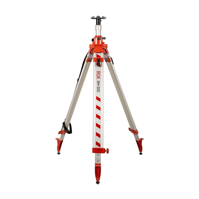 Телескопические стойки оборудованы комбинированной системой фиксации винт+клипса, благодаря чему подготовка геодезического штатива к работе занимает считанные секунды и обеспечивается надежность. Специальные цепи ограничивают ход ножек в безопасных пределах, а противоскользящие накладки и прочные упоры помогают крепко установить RGK SH-300 как на рыхлых, так и на гладких поверхностях.