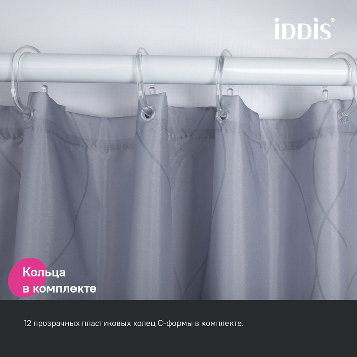 Шторка для ванн текстильная Iddis Base 240x200 серая (BD03P24i11)