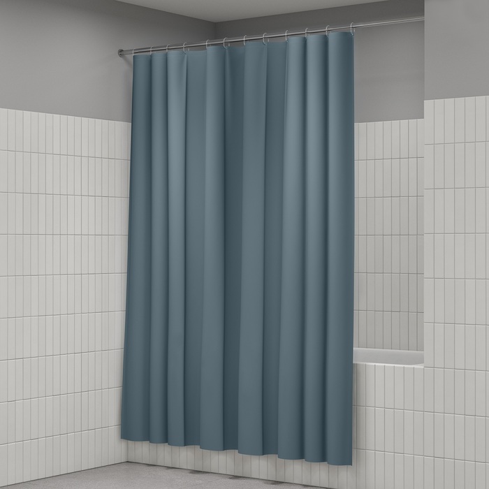 Размер (ВхШ): 200х180 см. Материал: PE, толщина 0,09 мм., штампованные люверсы, 12 прозрачных пластиковых колец, форма "С", упаковка ПВХ пакет, картонная лента, двойной крючок.