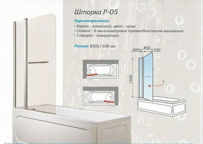 Шторка для ванной 1Marka 150*85 R (P-05)