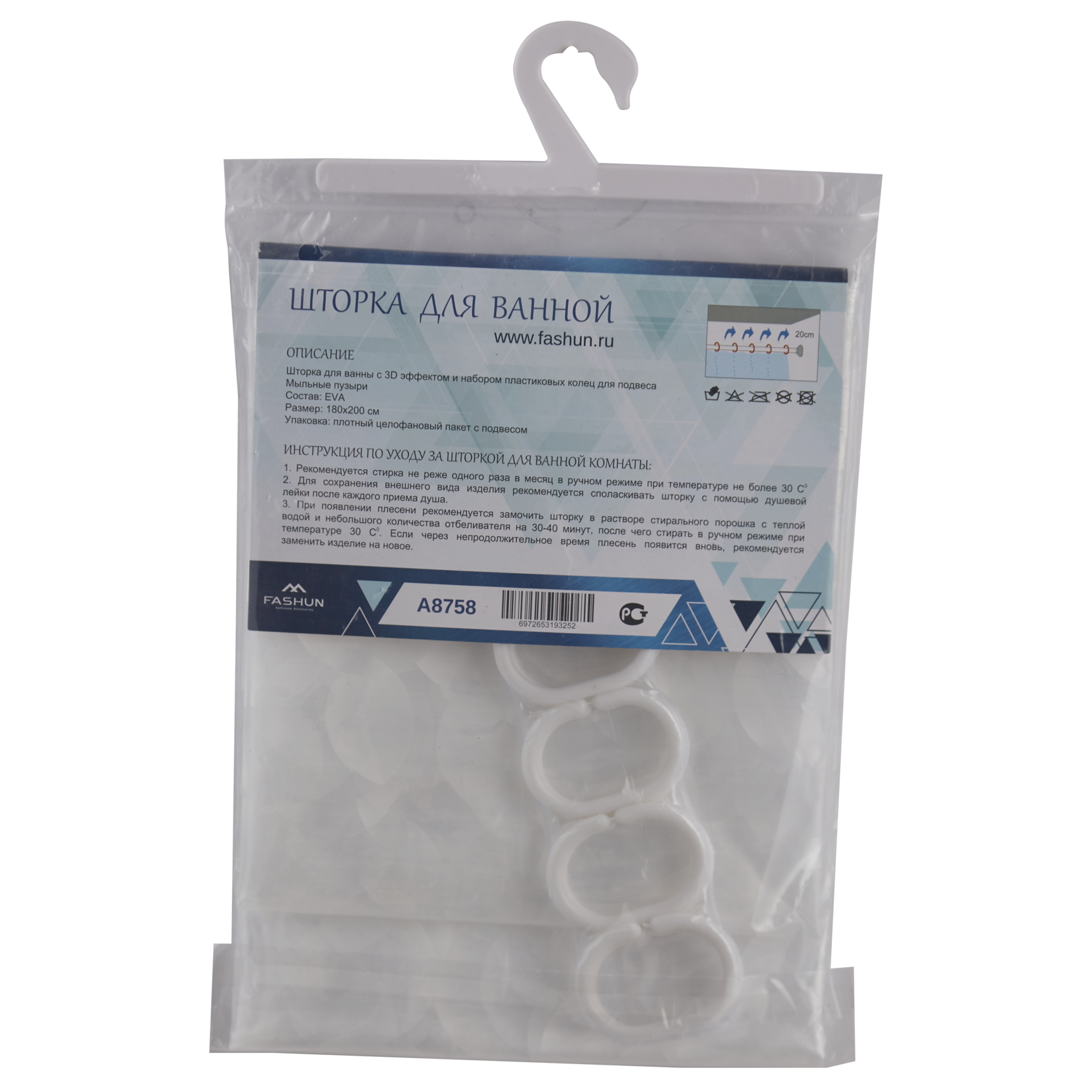 шторка для ванны с 3D эффектом и набором пластиковых колец для подвеса