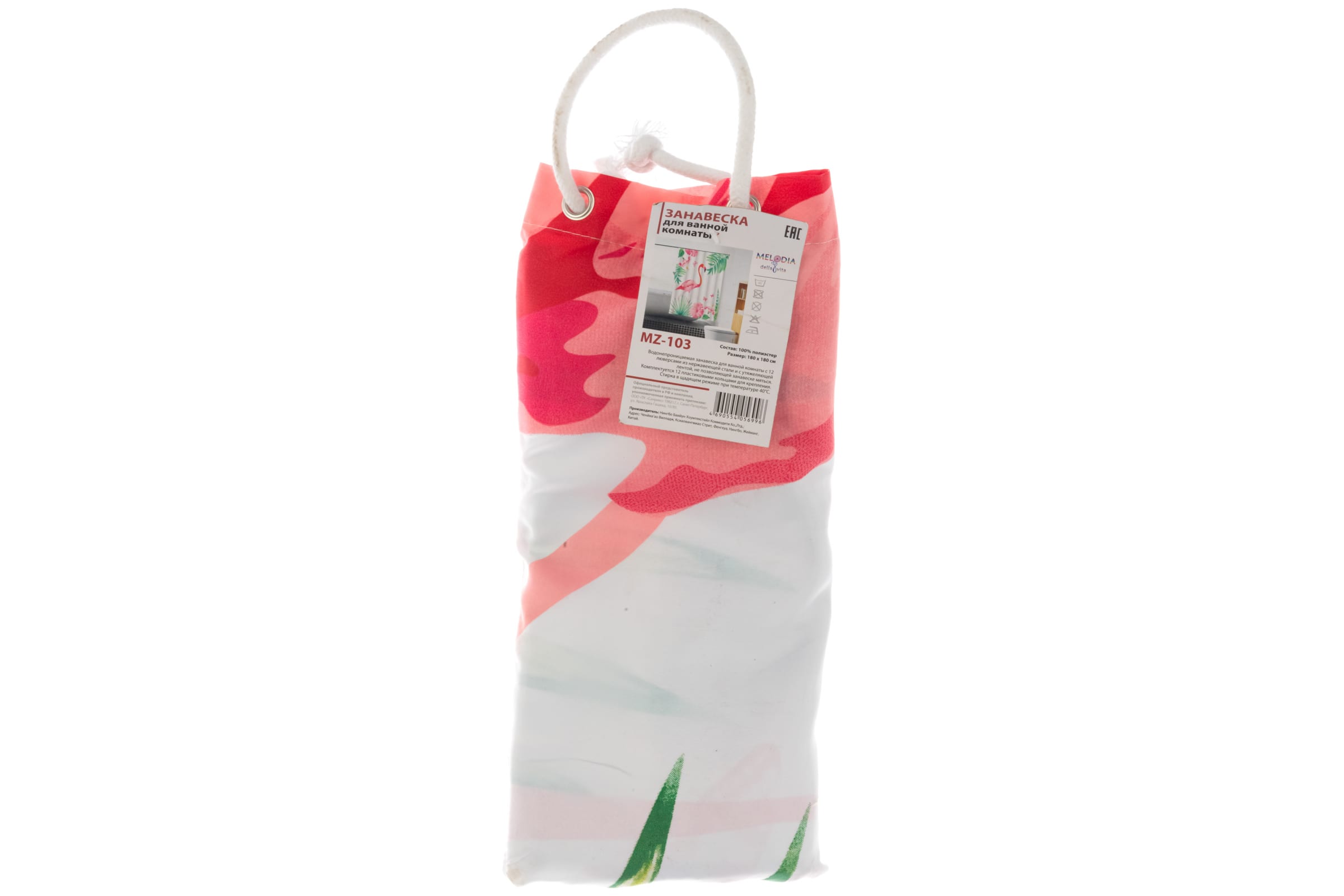Шторка для ванны текстильная Melodia 180х180 см Розовый фламинго (MZ-103)