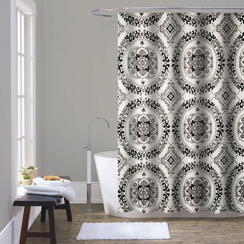 Занавеска для душа из полиэстера с отделкой из набивных блёсток.