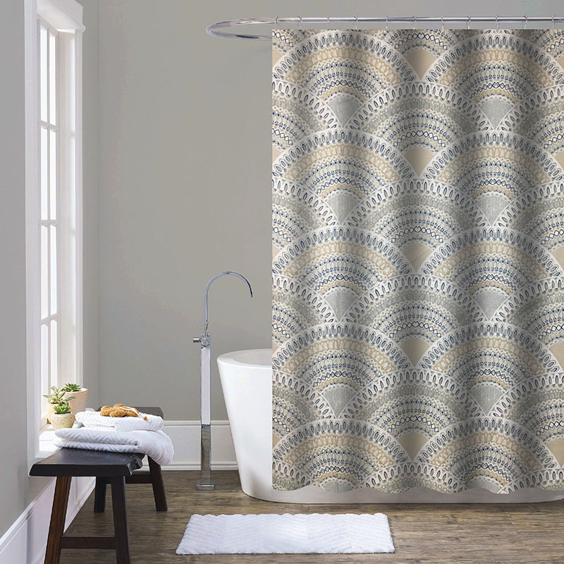 Занавеска для душа из полиэстера с отделкой из набивных блёсток.