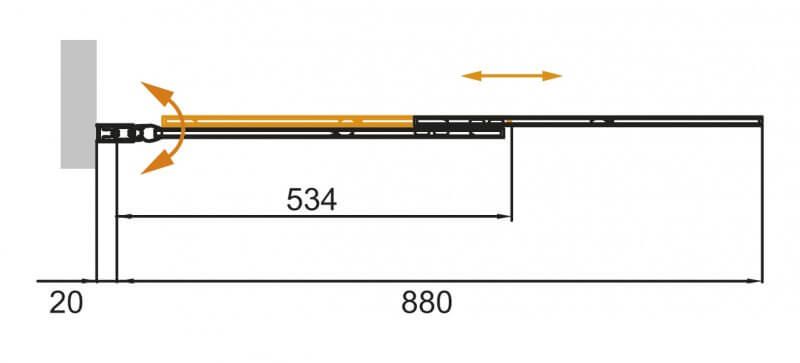 Особенности: регулировка ширины шторки с поворотной петлей.