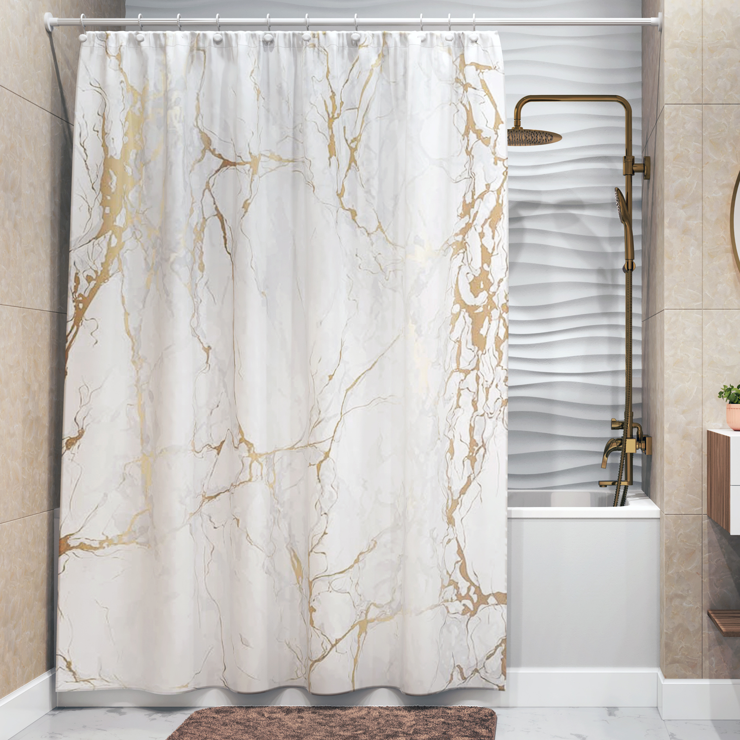 Описание: Размер 1800х2000 мм, водоотталкивающая пропитка. Низ шторки оснащен утяжелителем, в комплект входят ластиковые кольца белого цвета, 12 шт. Плотность шторки 90 г/м2