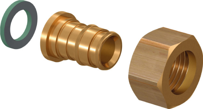 Штуцеры с накидной гайкой латунные предназначены для соединения труб из сшитого полиэтилена PE-Xa с отопительными и санитарными приборами, резьбовыми коллекторами, запорно-регулирующей арматурой. Технология соединения трубы с фитингом основана на способности труб из сшитого полиэтилена восстанавливать свою первоначальную форму после расширения благодаря молекулярной памяти.