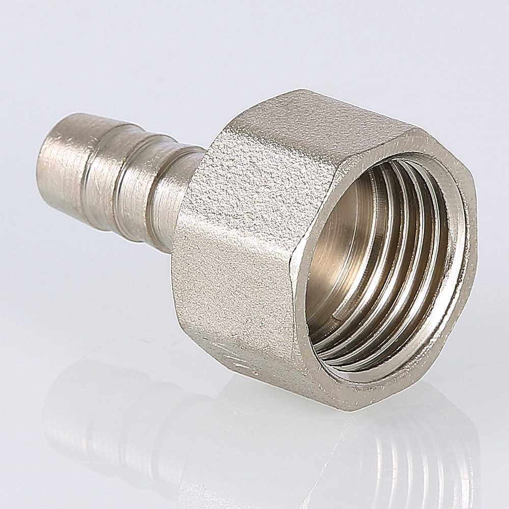 Штуцер для шланга с внутренней резьбой изготовлен из высококачественной сантехнической латуни марки CW617N методом горячего прессования с нанесением защитного гальванического покрытия (никель).